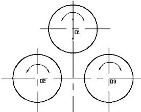 1.1:主傳動(dòng)指上輥繞O1,下輥分別繞O2、O3作順時(shí)針或逆時(shí)針旋轉(zhuǎn)。它是以兩根下輥為主驅(qū)動(dòng) ,由主電機(jī)、主減速機(jī)、連軸器、及開式齒輪組成。工作時(shí)上輥由板料間的摩擦力帶動(dòng),同時(shí)作為從動(dòng)軸,起調(diào)整擠壓工件的作用。輔傳動(dòng)由單獨(dú)的傳動(dòng)系統(tǒng)控制上輥的上升或下降。由上輥升降電動(dòng)機(jī)、減速機(jī)、連軸器、蝸輪、蝸桿、絲母、絲桿組成。工作時(shí),由減速機(jī)帶動(dòng)蝸桿轉(zhuǎn)動(dòng)蝸輪內(nèi)絲母旋轉(zhuǎn),使絲桿及上輥軸承座作升降運(yùn)動(dòng),使上輥上升或下降。卷板時(shí),在上輥的下降壓力下,通過兩下輥正反轉(zhuǎn)動(dòng),使板料達(dá)到所需的曲率,形成預(yù)計(jì)的圓形或弧形。